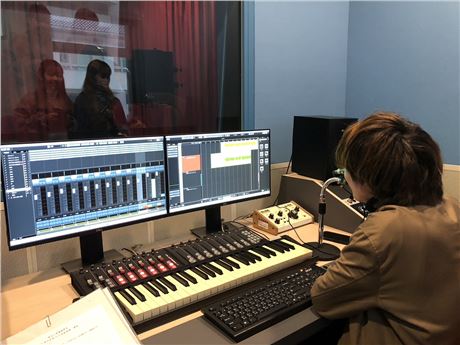 圖解:學生透過專業軟硬體設備進行聲音後期處理