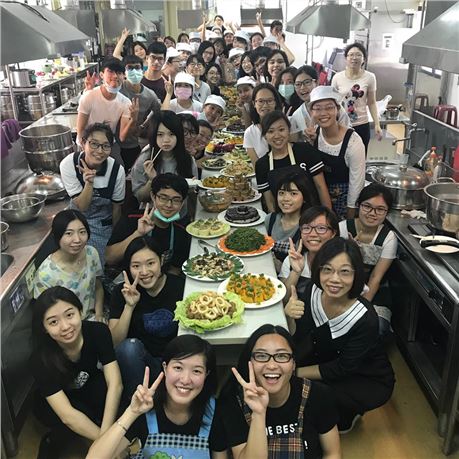 在有限的時間內,全班同學合作製作出50-100人份不同主題的便當;從菜單設計到實際製備,以及最後的品評檢討,都學習藉團隊合作,大量製備符合成本、衛生且美味的餐食。