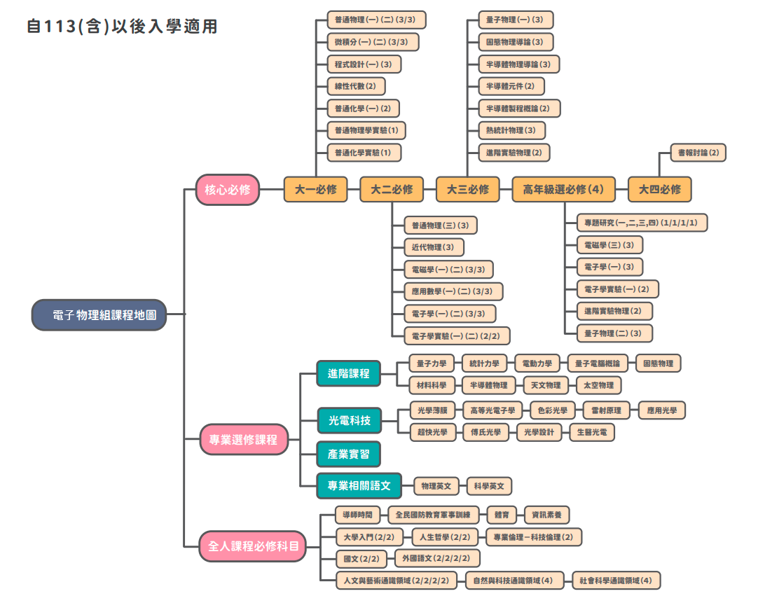 物理系電子物理組著重培養學生在基礎物理與半導體技術方面的知識,讓學生在廣泛學習後具備科學與科技產業所需的邏輯思維與實作能力。與傳統物理系相比,電子物理組增強了半導體相關課程與實驗,並適度減少部分較抽象的理論物理內容,使學生能更貼近產業需求。與應用物理系不同之處在於,本組特別聚焦於半導體知識與實作訓練,而非更廣泛的物理應用領域。 |