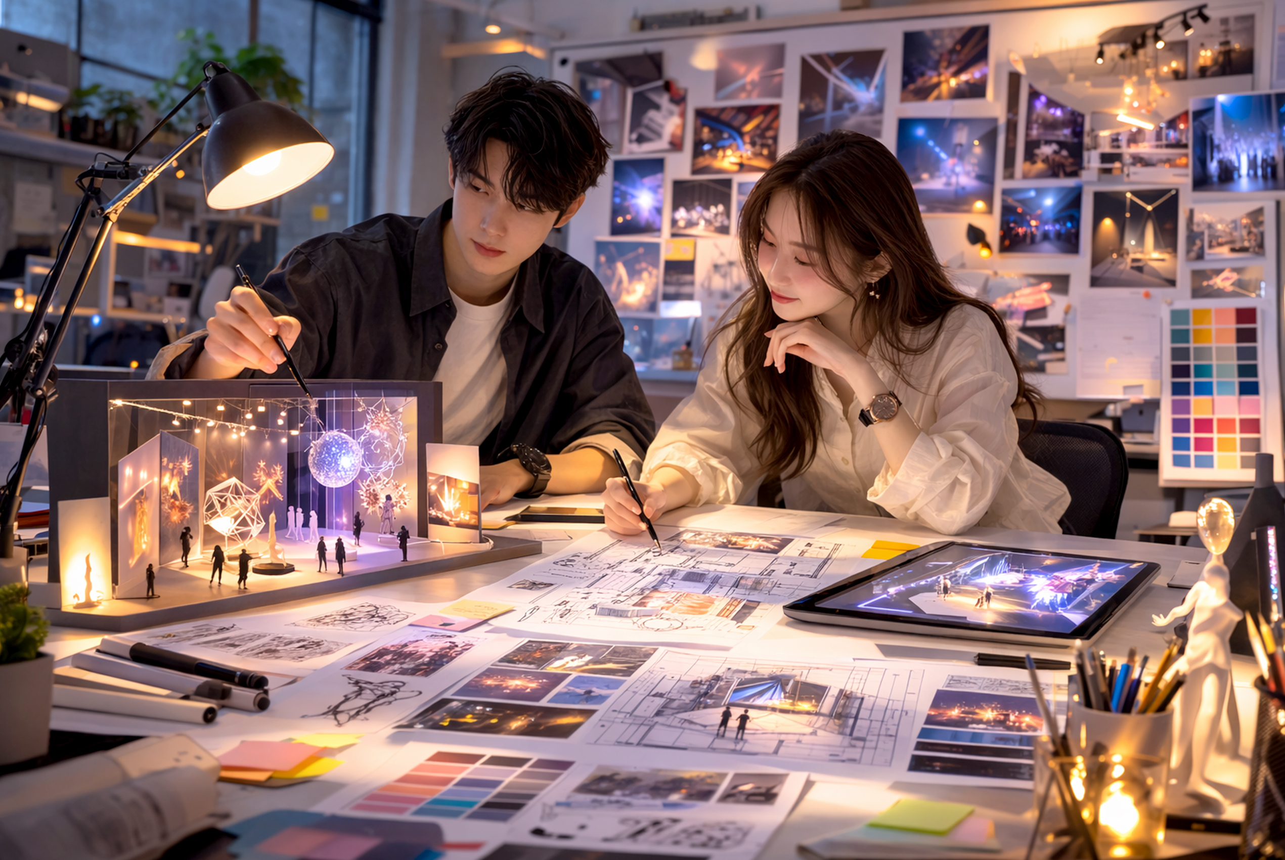 「展演企劃與設計」課程專注於展覽與演出活動的創意規劃與設計實踐,課程涵蓋企劃構思、空間配置、燈光與視覺設計,並強調整體活動的視覺效果與觀眾體驗。透過案例分析與實作,學生累積策展經驗,並提升團隊合作與專案管理能力,為未來在展演產業中發展奠定堅實基礎。