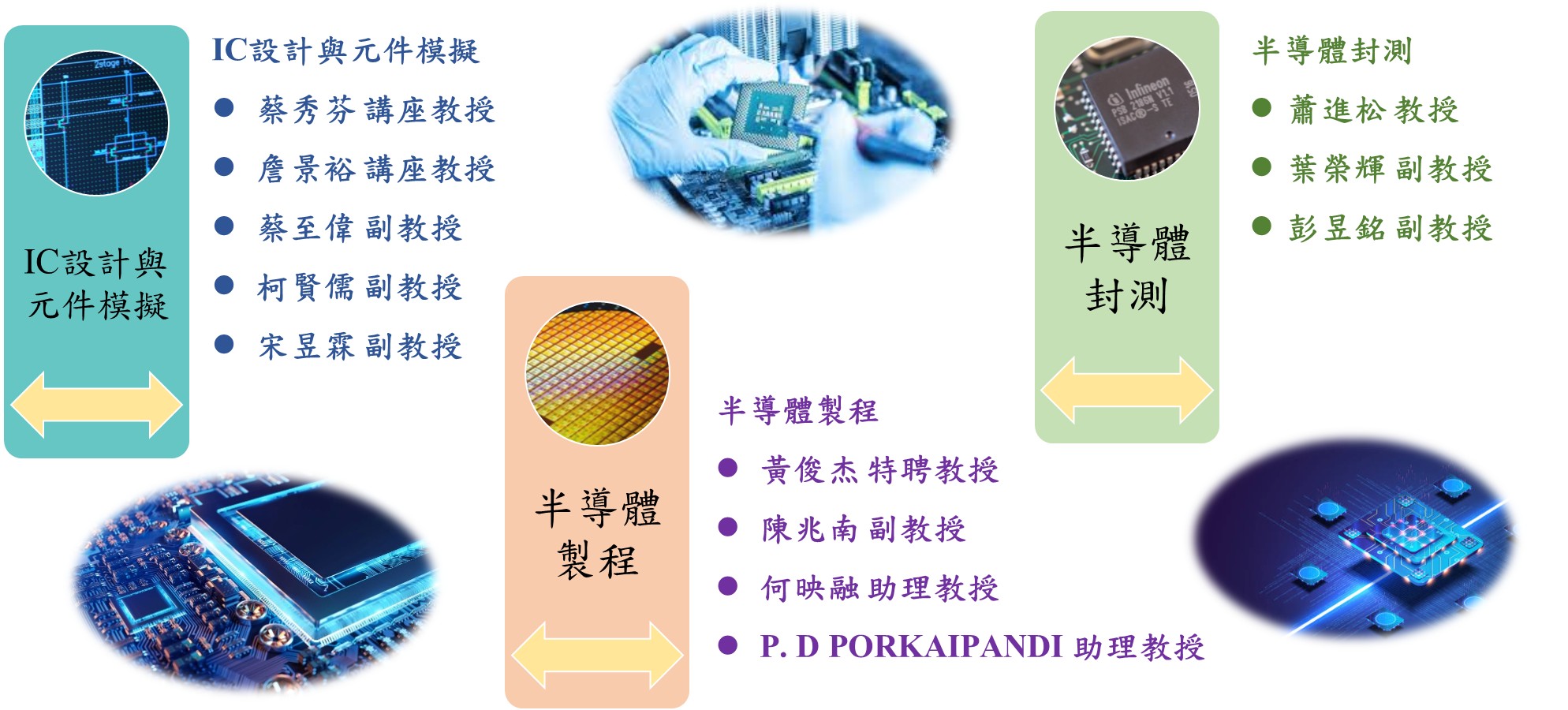 從事電子晶片封裝製程評估、設備測試之技術發展、工程設計、平台建構、與問題分析解決等工作。