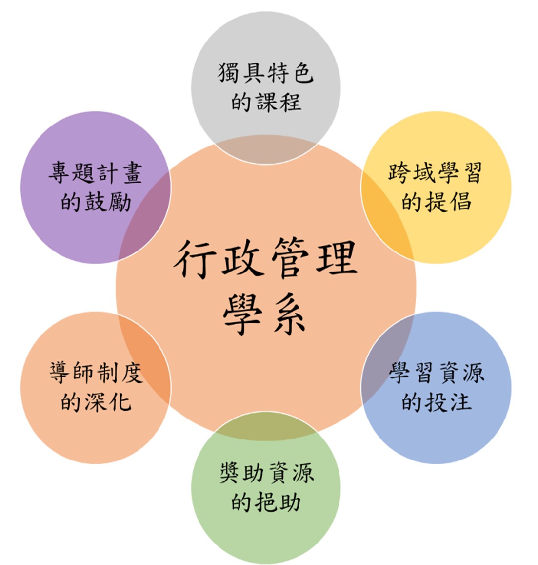2.獎助資源的挹注︰世新大學提供豐富獎助資源,例如,透過「飛躍翠谷」與「生活助學金」等專案,提供經濟相對弱勢同學每月助學金,使同學不會因為經濟上的問題而將課業偏廢。另外,行政管理學系獨有的「系友會獎學金」及「紀念徐有守教授獎助學金」,每學年提供獎助學金,鼓勵與獎助同學。另外,行政管理學系教師在執行國科會專題研究計畫(或委託研究計畫)過程中,也會聘任系上同學擔任研究助理,讓同學可以在系上學習,也能有相對固定的獎助經費。